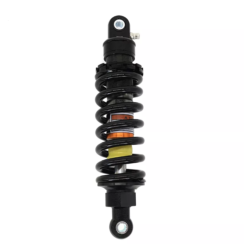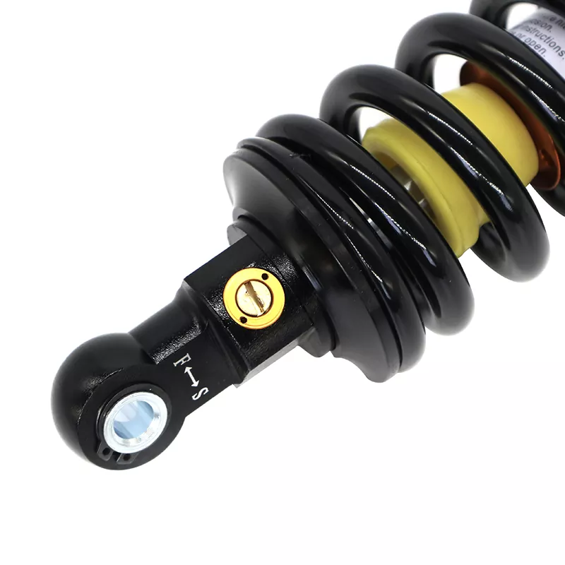உள்ளமைக்கப்பட்ட ஏர்பேக் ஒற்றை அட்ஜஸ்டபிள் ரியர் ஷாக் அப்சார்பர் அதிக வெப்பநிலையில் வாயுவை உருவாக்கும் எண்ணெயின் சிக்கலைத் தீர்க்க வடிவமைக்கப்பட்ட வெளியேற்ற வால்வுடன் வடிவமைக்கப்பட்டுள்ளது. வாயு அழுத்தம் குறைவாக இருந்தால், சிறந்த தணிப்பு விளைவை பராமரிக்க 0.6-0.8Mpa ஐ நிரப்பலாம்.