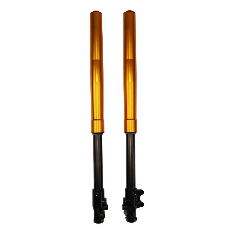 தலைகீழ் ஒற்றை அனுசரிப்பு முன் ஃபோர்க் செயல்திறன் மற்றும் தனிப்பயனாக்கம் ஆகிய இரண்டையும் விரும்பும் ரைடர்களுக்காக வடிவமைக்கப்பட்டுள்ளது. ஆஃப்-ரோடு பைக்குகள், பிட் பைக்குகள் மற்றும் பலவற்றிற்கு ஏற்றது, உங்கள் பைக்கின் பாணியுடன் பொருந்துமாறு நீலம், கருப்பு அல்லது மஞ்சள் ஆகியவற்றைத் தேர்வுசெய்து உட்புற டியூப் நிறத்தைத் தனிப்பயனாக்கலாம். கூடுதலாக, வெளிப்புறக் குழாய் நிறமும் தனிப்பயனாக்கக்கூடியது, இது ஒரு தனித்துவமான தோற்றத்திற்கான பல்வேறு விருப்பங்களிலிருந்து தேர்ந்தெடுக்க உங்களை அனுமதிக்கிறது.